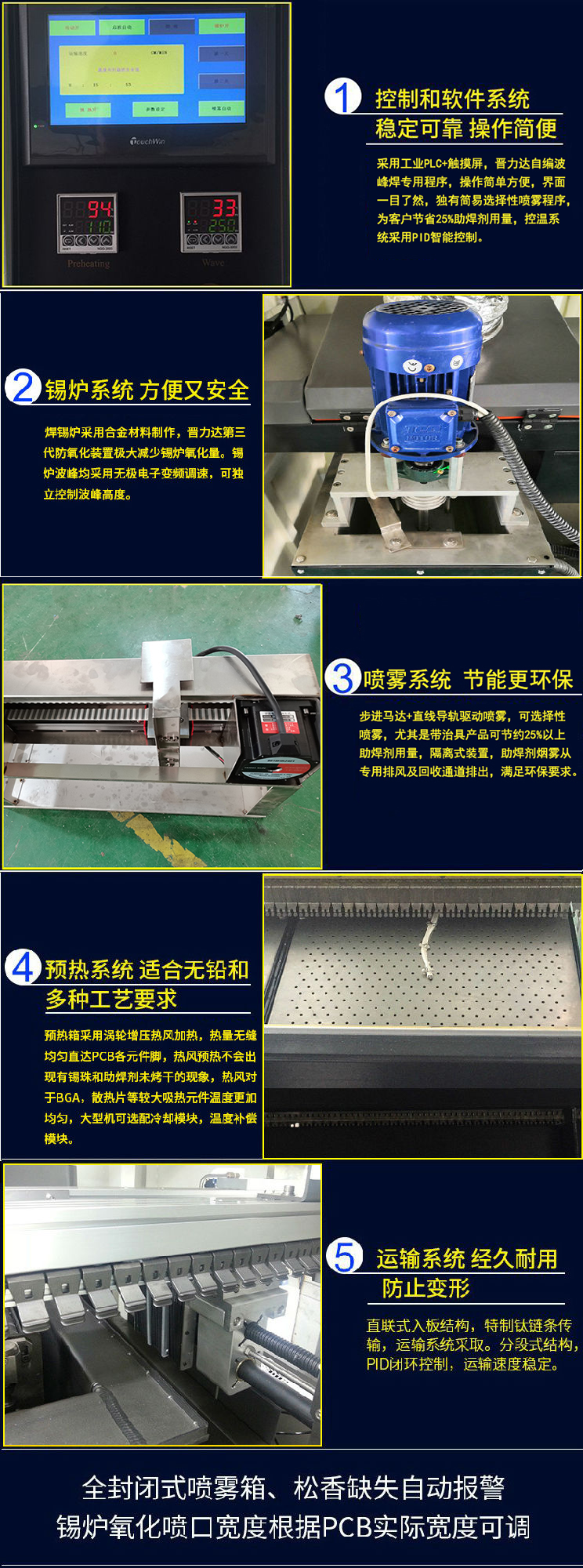 ● 運輸系統閉環控制,精確控制PCB板預熱和焊接時間
