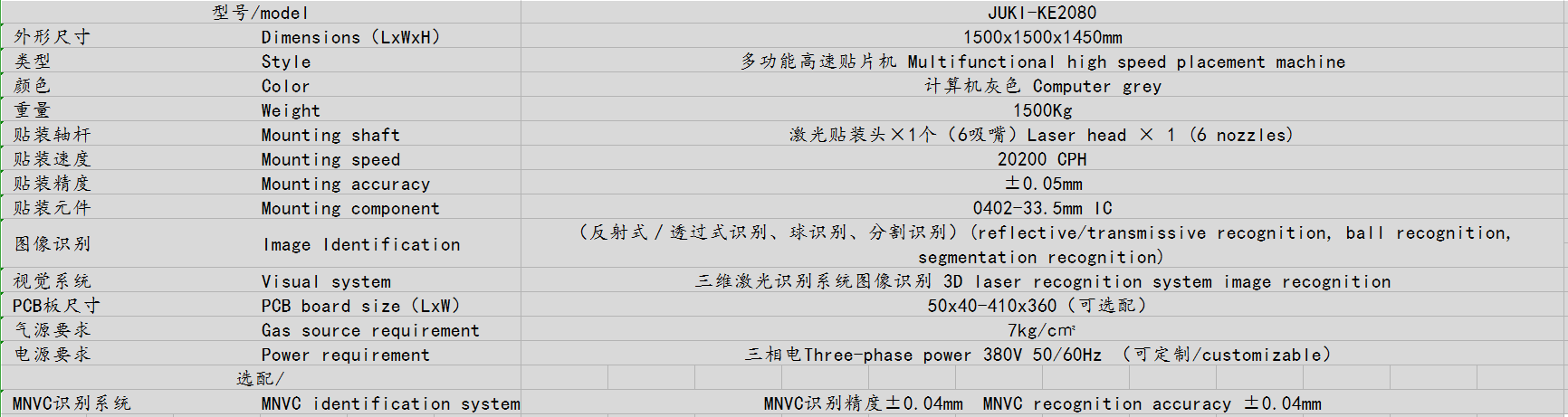 4.JUKI三維影像識別技術(LNC60)在貼裝元件前通過激光掃描監視元件的吸取情況,包括元件長寬尺寸和厚度,可以防止空氣壓無法識別的微小元件的不良貼裝