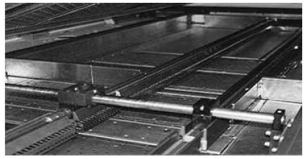 回流焊的軌道,它的功能是將PCB 從進口端輸送到出口端,完成整個焊接過程。