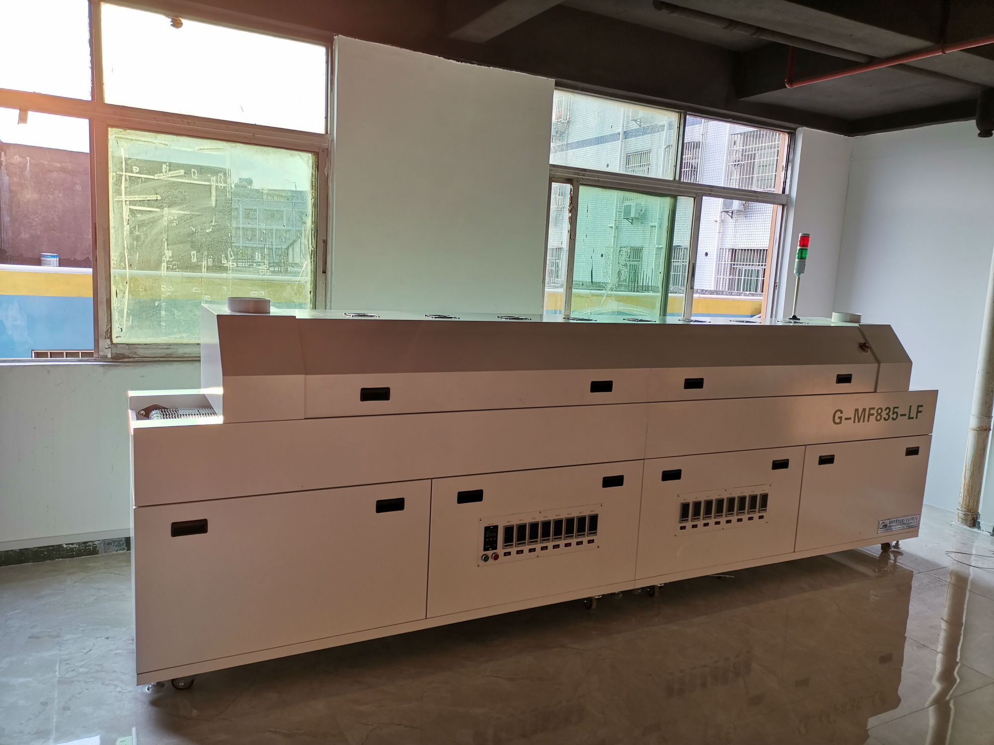回流焊的核心環(huán)節(jié)是利用外部熱源加熱,使焊料熔化而再次流動(dòng)浸潤,完成電路板的焊接過程。