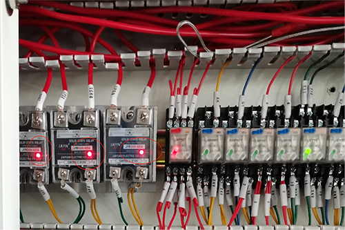 3、檢查設(shè)備的控制部分,對加熱進(jìn)行檢測和控制。固態(tài)繼電器是否有輸出,如果不確定,用相鄰溫區(qū)的繼電器切換,判斷繼電器是否有故障。