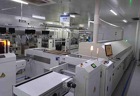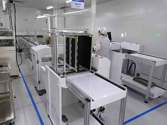 惠倫晶體晶振烤膠車間內場景(拍攝照片經由客戶同意) 自動上下料機+雙軌道回流焊雙倍產能