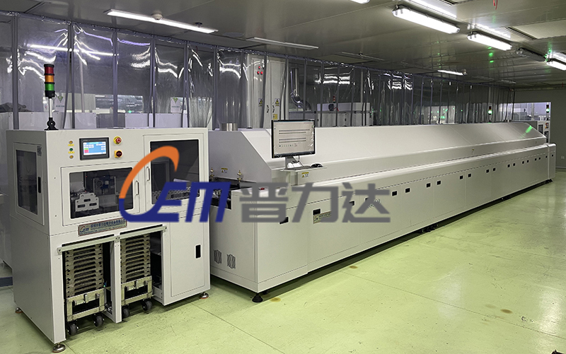 艾華集團湖南益陽總部2022年3月16日向我公司(晉力達)咨詢定制一臺大型20溫區回流焊以及自動上下料機構帶載具校正功能,型號:G-F2040-LF大型環保蝸殼式雙通道熱風結構+導軌+電腦+上料機+下料機+流水線(非標定制);