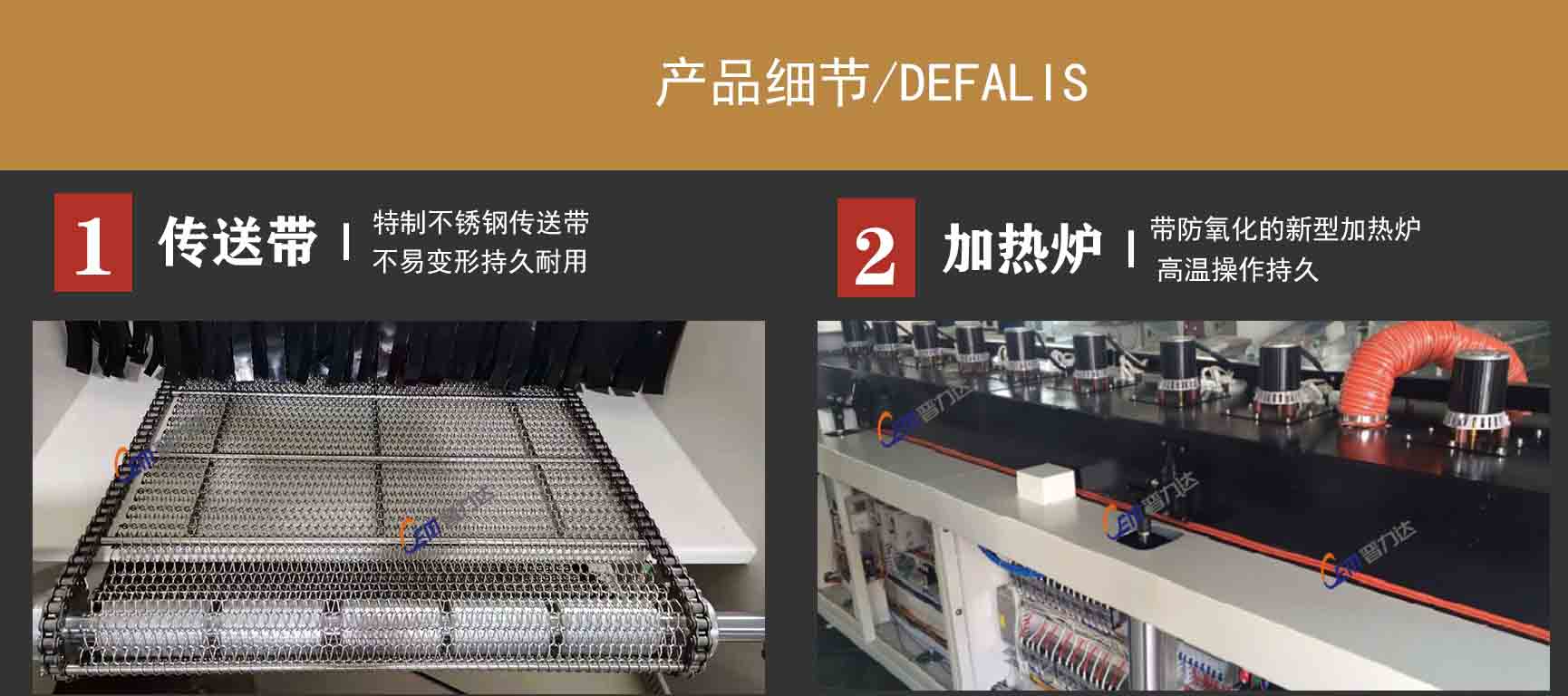 ●高精密承重人字形網(wǎng)帶傳動支撐結(jié)構(gòu),特殊硬化處理,可承重80KG-100KG產(chǎn)品不變形